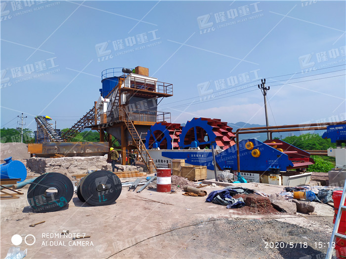 鵝卵石濕法制砂洗砂的生產(chǎn)線現(xiàn)場_附加工設(shè)備報價..